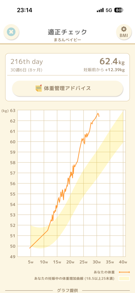 結果的に、31週ですでに+12kg。