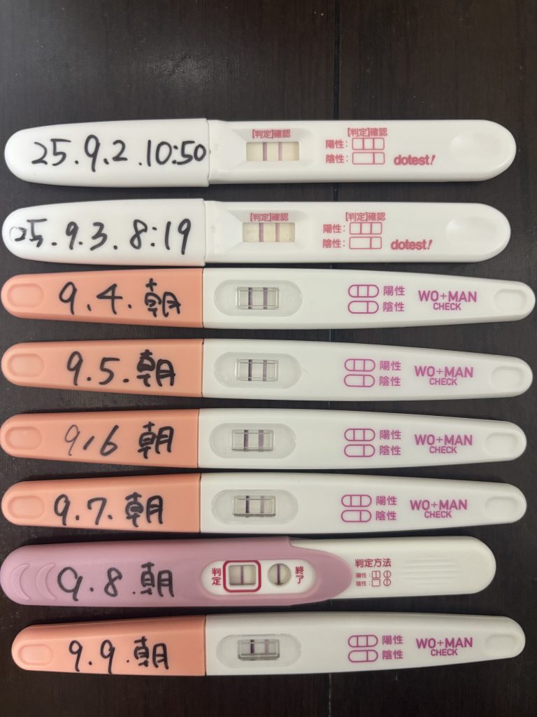 先ほど妊娠検査薬の写真を載せましたが、実は9月2日、妊娠検査薬を初めて試した日には2回検査薬を使用しています(笑)